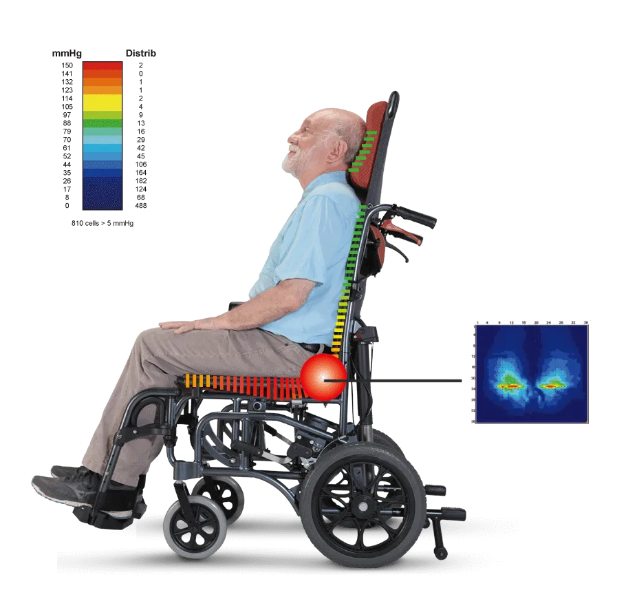 The Tilt-in-space system allows the attendant to change the position of the user by tilting the chair, thus shifting the pressure away from one point and redistributing it over a larger surface area.