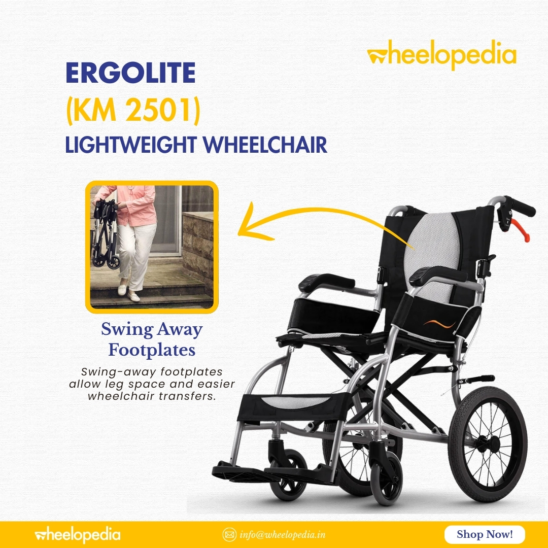 The swing away footplates provides more space for leg movements and allows for easy transfer, on and off the wheelchair.