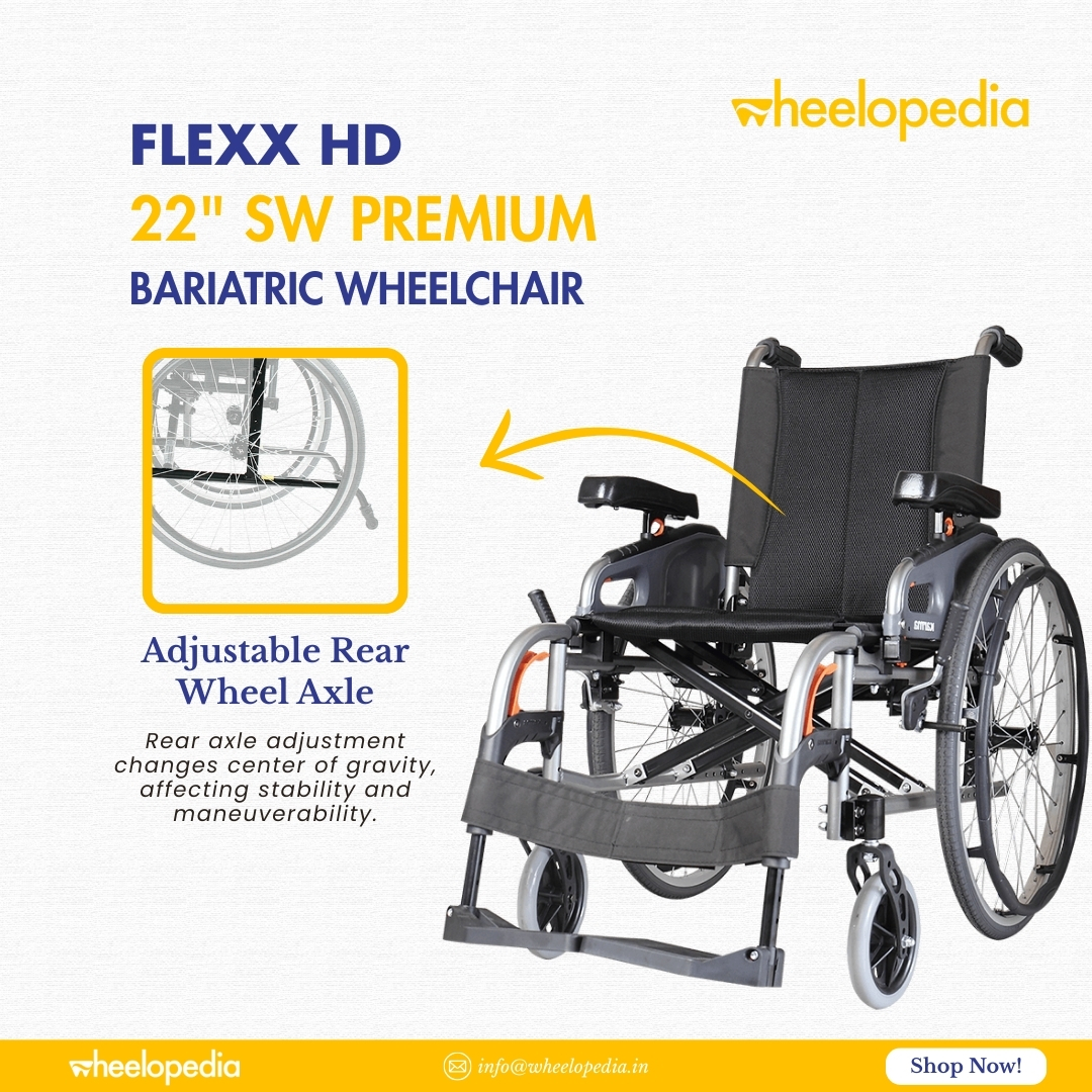 By changing the position of the rear wheel axle, you change the center of gravity of the wheelchair, and thus changing the performance of the wheelchair. Moving the rear wheels back will increase the base area, therefore making the chair most stable. Moving the rear wheels forwards will decrease the base area, allowing caster to roll and swivel more easily.