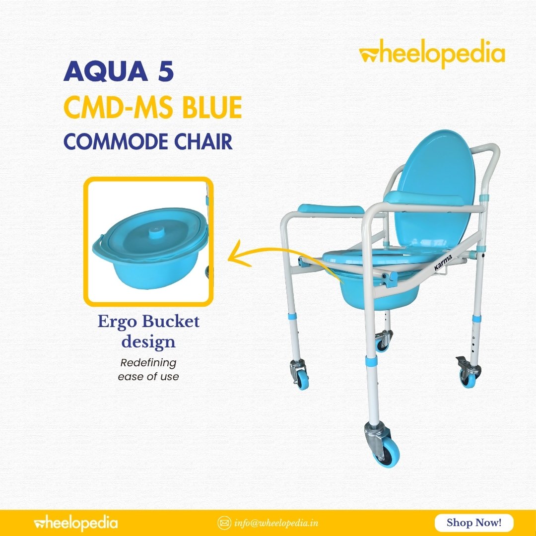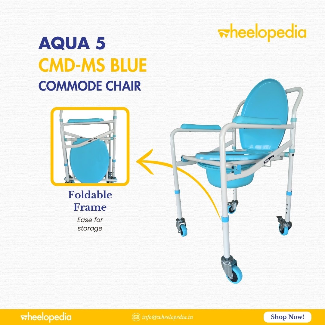 Auqa 5 Steel Foldable Injection Moulded With Wheel Commode Chair