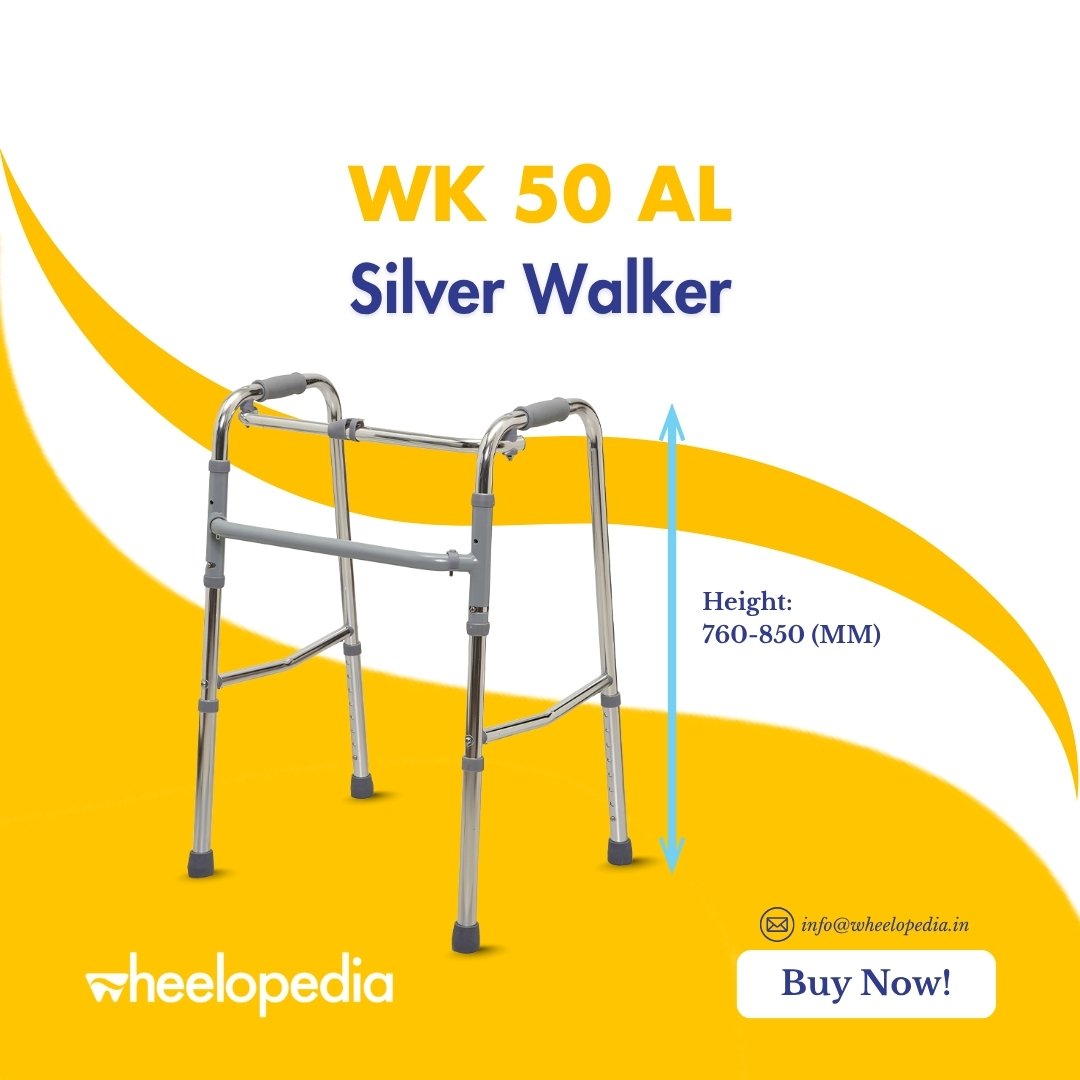 WK 50 AL-Silver Aluminium Height‑Adjustable Walker for Elder Use